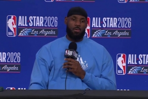 体育资讯2月16日讯 今日,湖人球星詹姆斯举行了全明星新闻发布会。
