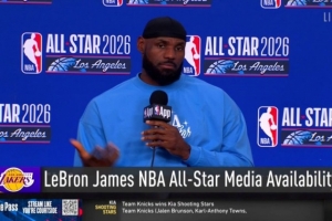 体育资讯2月16日讯 今日,湖人球星詹姆斯举行了全明星新闻发布会。