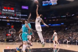 GIF-文班大帽迪亚巴特勾手,又干扰造成黄蜂24秒