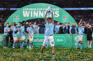 体育资讯03月23日讯 凌晨联赛杯决赛,曼城2-0战胜阿森纳捧杯,曼城小将奥赖利上演梅开二度。