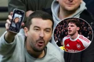 体育资讯02月23日讯 据英媒《镜报》报道,在凌晨进行的北伦敦德比中,有热刺球迷向赖斯展示他妻子的照片,以此来挑衅和嘲讽赖斯。